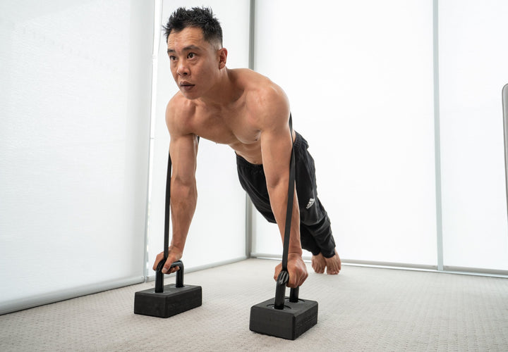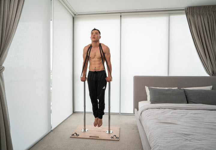Add additional resistance to your calisthenics exercises as you get stronger. Increase the band tension by shortening the length of the band.