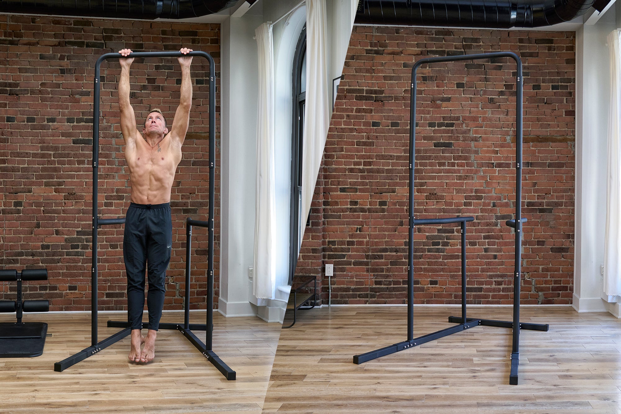 Meet the Big Bar Pro, our hybrid pull-up bar and dip bars, co-designed by Georges St-Pierre. The pull-up bar is 226cm high with no cross-bar to restrict your movement. The dip bars have a parallel and angled section allowing you to mix your grips when performing dips and rows. Outdoor friendly.